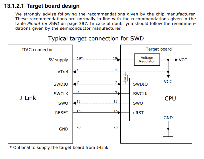즉, 타겟보드의 MCU 에 공급중인 전원에 연결해야한다. J-Link 에서는 이 전압값에 맞게 자동으로 로직레벨을 설정하게 된다. 전압범위 1.2V ~ 5V