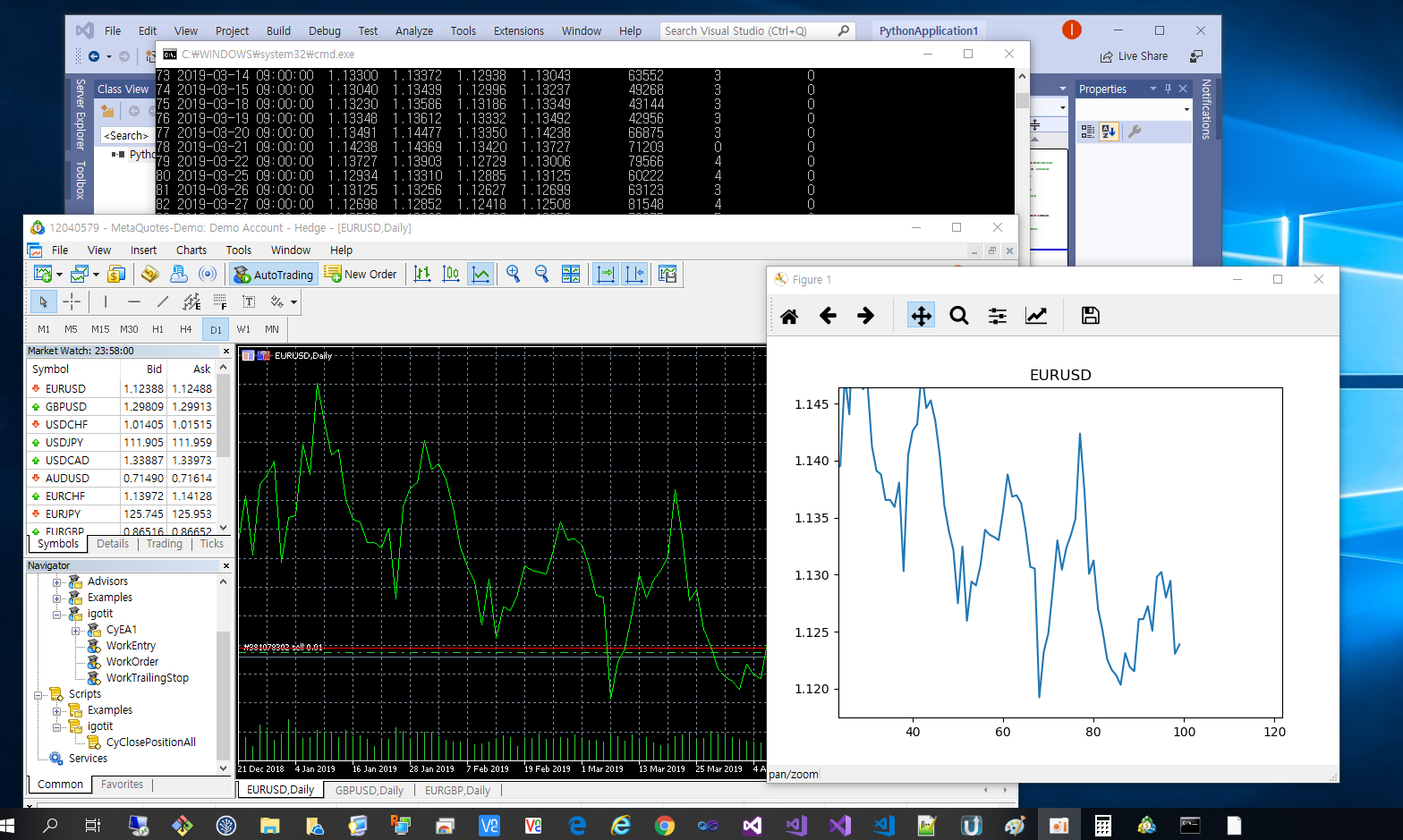 파이썬에서 금융시계열 데이터 가져와서 활용하기 위한 방법으로 메타트레이더5 기반한 방법. 사전 필수 준비사항.1. 메타트레이더 5 설치된 상태.- 암호화폐 거래소 바이빗의 MT5 , IC Market MT5 등 아무거나 설치해도 됨. 2. 상기 1의 MT5 에서 Account 연결된 상태. - 계정은 모의계좌여도 됨. - Account 연결되어있어야 데이터 공급받을 수 있기 때문에 필수. 3. 파이썬 3.7 개발/실행환경 - 본 예에서는 Visual Studio 2019 의 파이썬 개발환경 이용. - VS2019 의 파이썬 개발환경 설치 상세 : https://igotit.tistory.com/2113 - PyCharm 이용해도 됨. 4. 파이썬용 메타트레이더5 패키지 - 본 패키지에 의하여 파이썬에서 상기1의 MT5 프로그램과 통신가능해짐. - MT5 for Python 설치 상세 : https://igotit.tistory.com/2112 |
