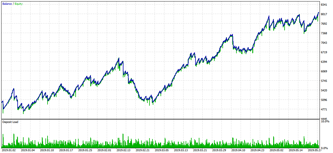 ( 아래 전량평가 수행예에서는 는 초기 계좌 5천달러 있는 상태에서 종목 EURUSD 기간 2019년 1월 1일 ~ 2019년 3월 30일까지의 구간에서 시험예)