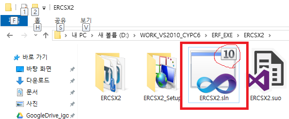 아래 예는 VS2010 에서 작업된 솔루션 파일인데 10 이 표시되어있다.