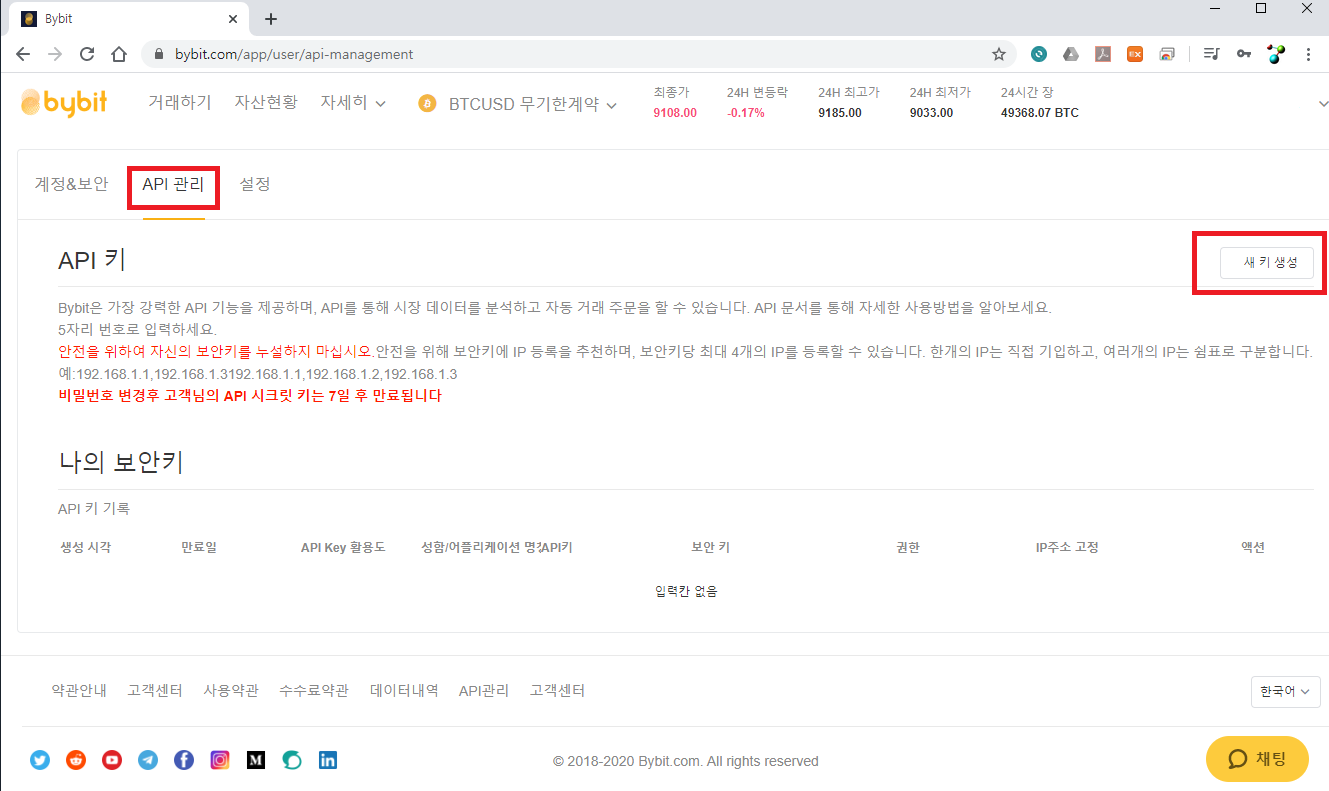 - bybit 의 API 이용하기 위해서는 키 생성 필수.