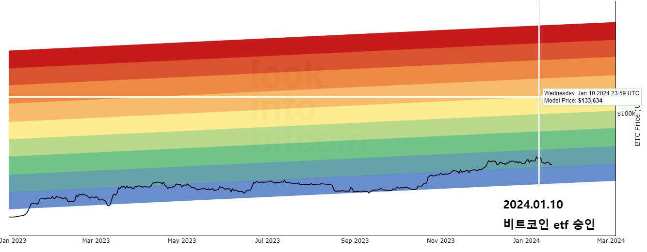 - 미국 초거대 자산운용사들의 비트코인 현물 ETF (총 11개) 를 SEC (미국 증권 거래 위원회) 에서 승인함과 동시에 즉시 비트코인 ETF 거래 개시됨.