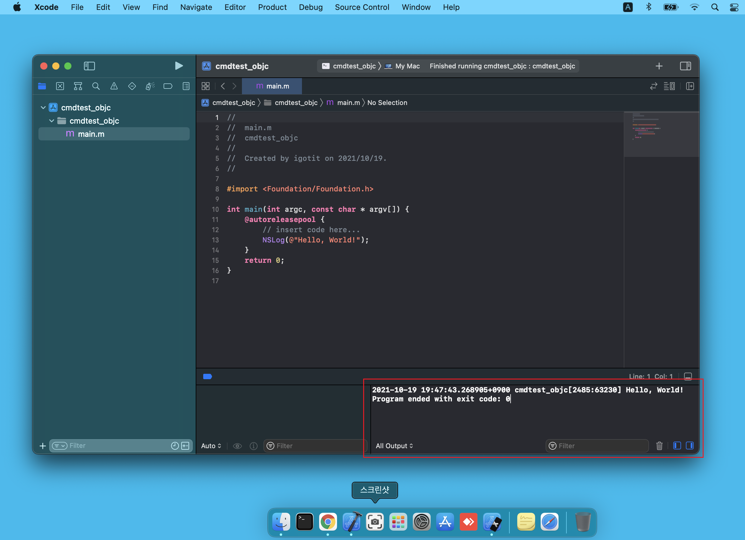 // Objective-C 언어 프로젝트 cmd_objc 의 main.m