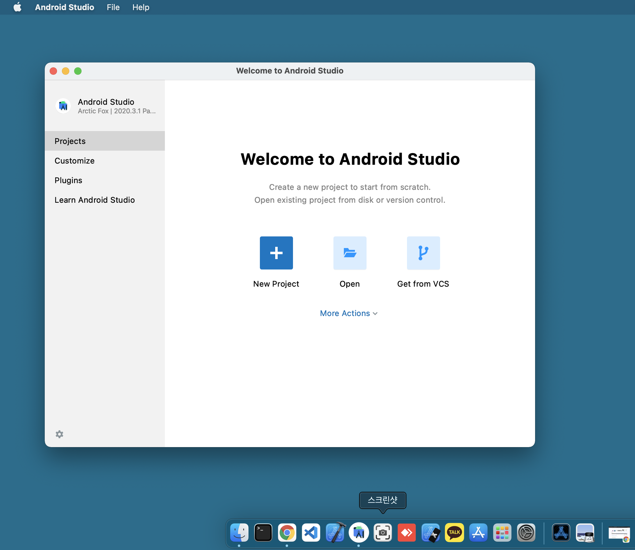 맥북 M1 에서 안드로이드 스튜디오 실행모습