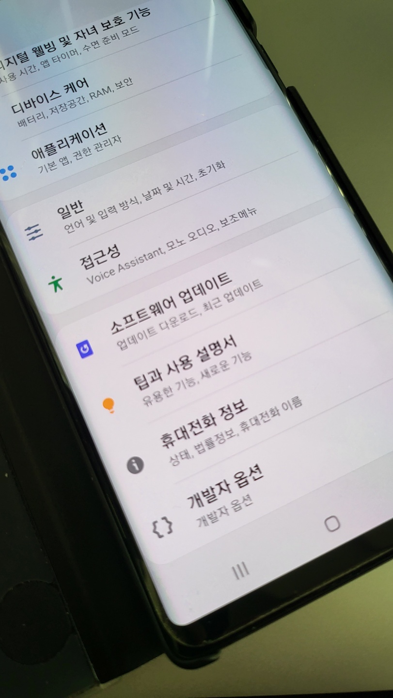 개발자 모드 활성화 이후 설정 첫화면에 보면 아래 사진처럼 처럼 "개발자 옵션" 이 보인다.