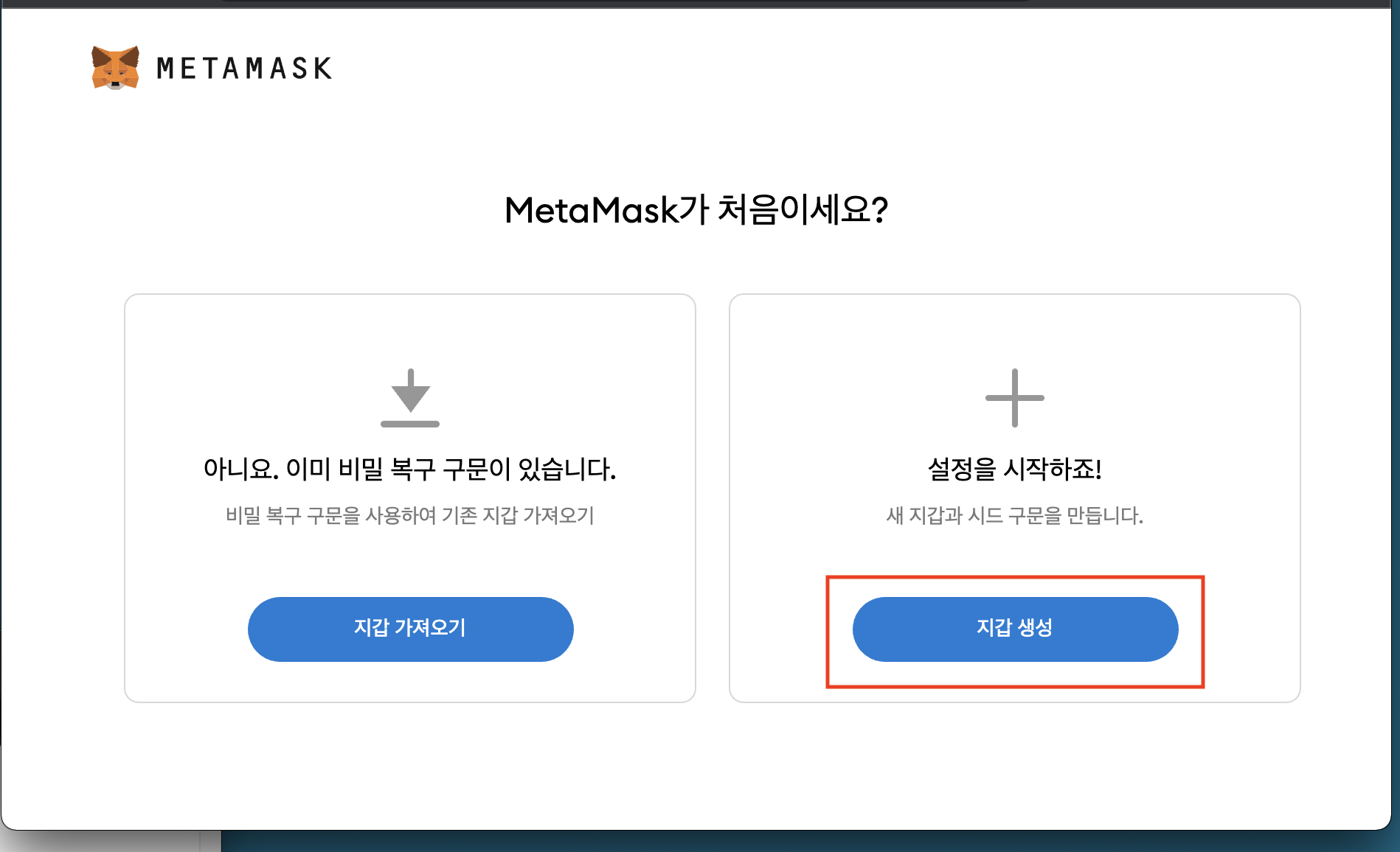 위 그림의 버튼 지갑생성 클릭하여 아래처럼 진행.