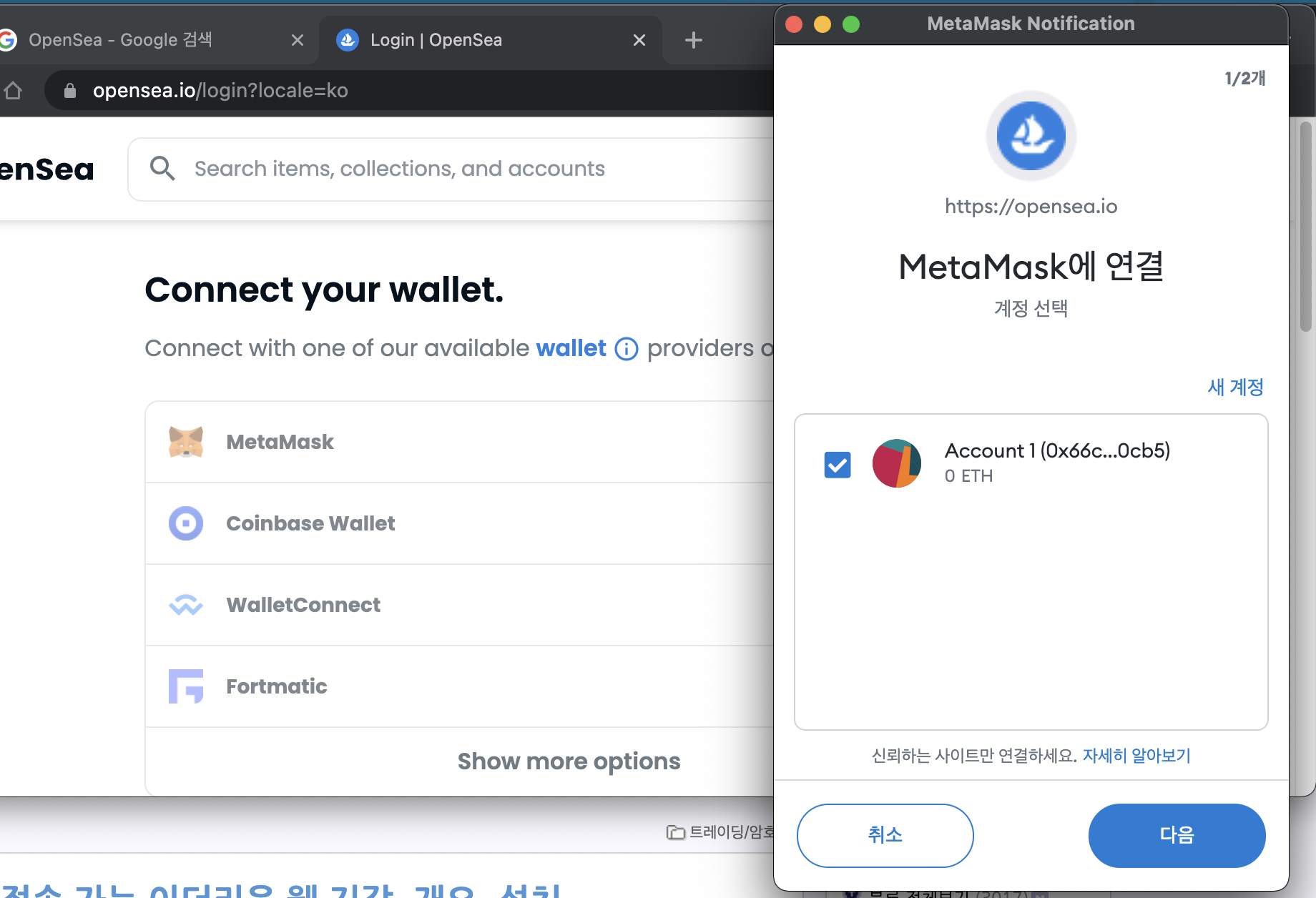 필수 사전 준비 : OpenSea 접속가능한 지갑 MetaMask 가 먼저 설치되어 있어야 함.