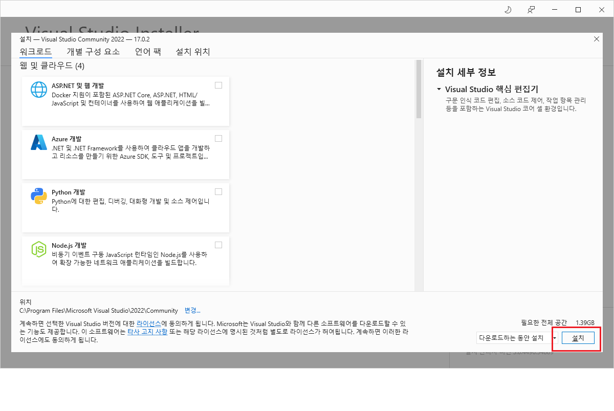 Visual Studio 2022 Community 설치