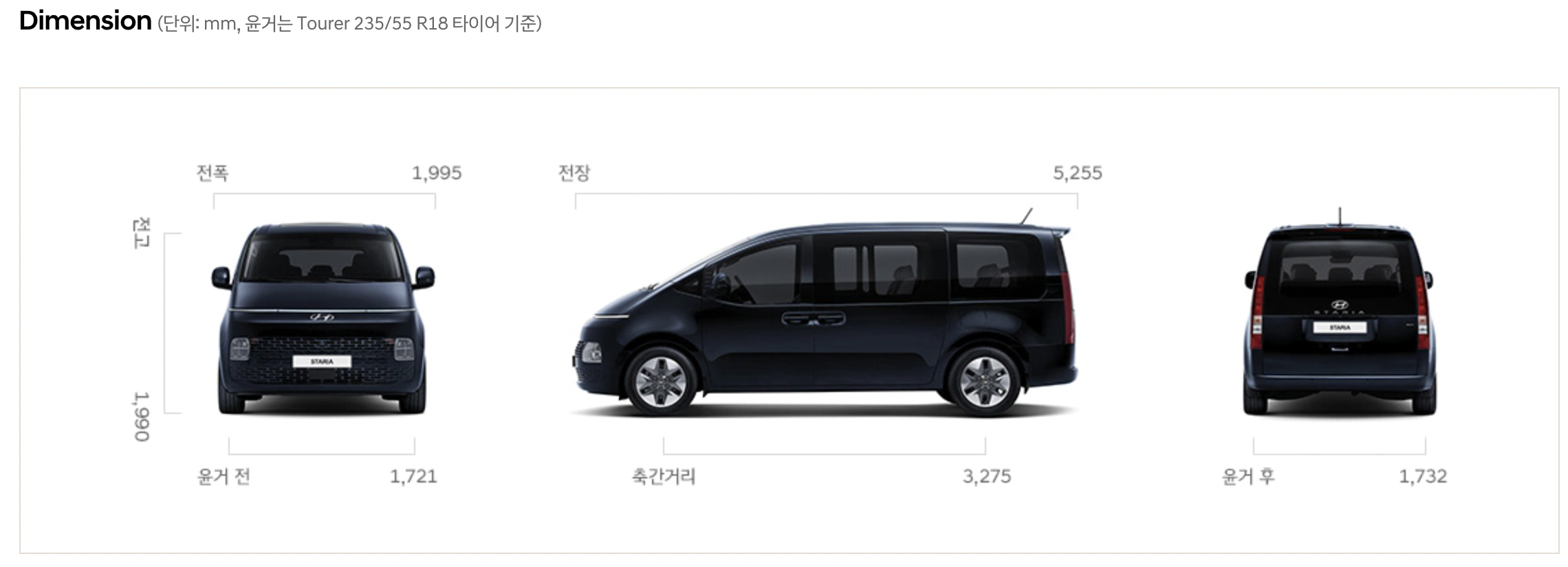 - 스타리아 종류 : 라운지, 투어러, 카고 , 캠퍼, 리무진.