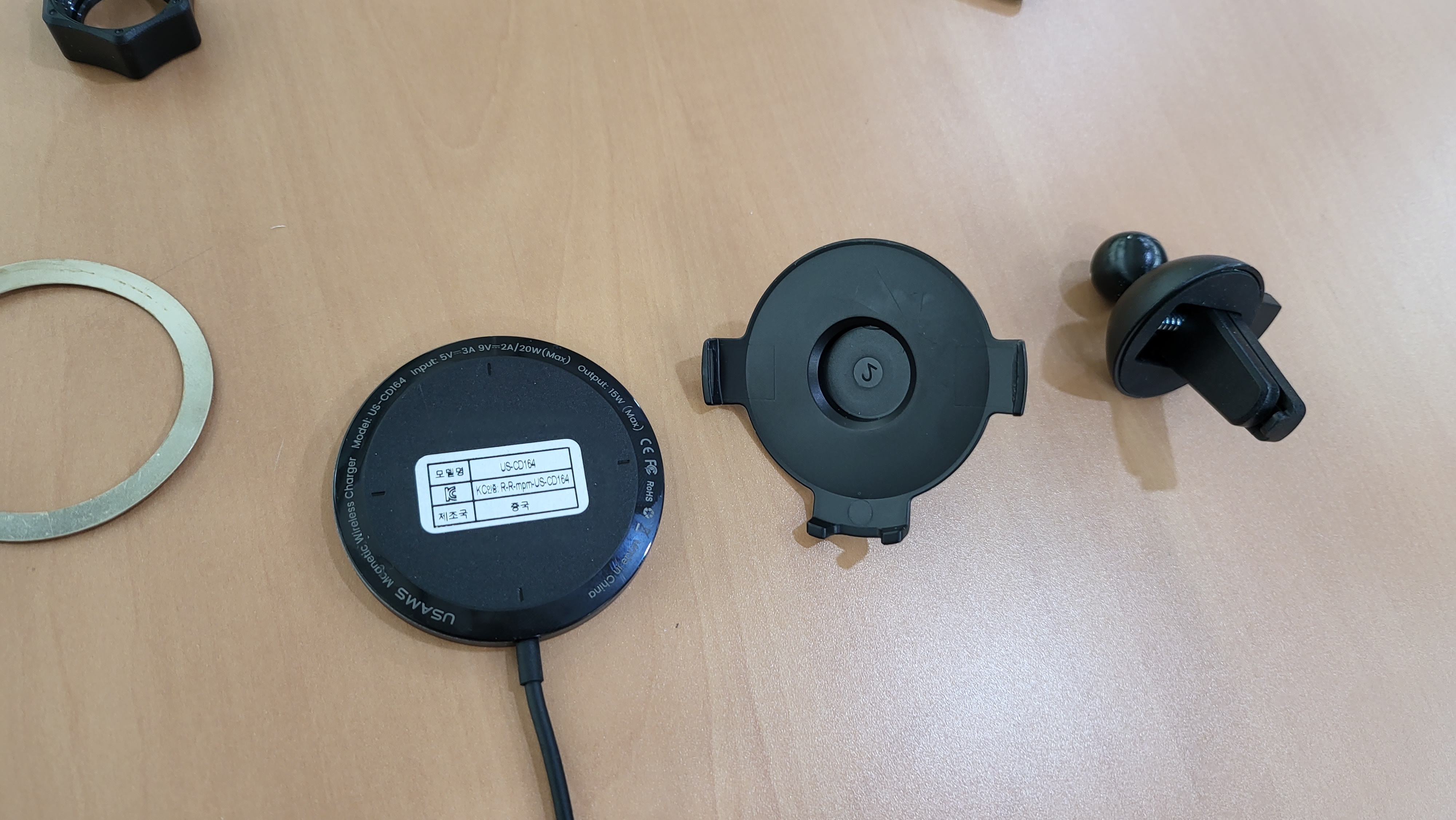 아래사진 : 제품에 같이 동봉된 원형 금속은 폰측에 부착하는것 .