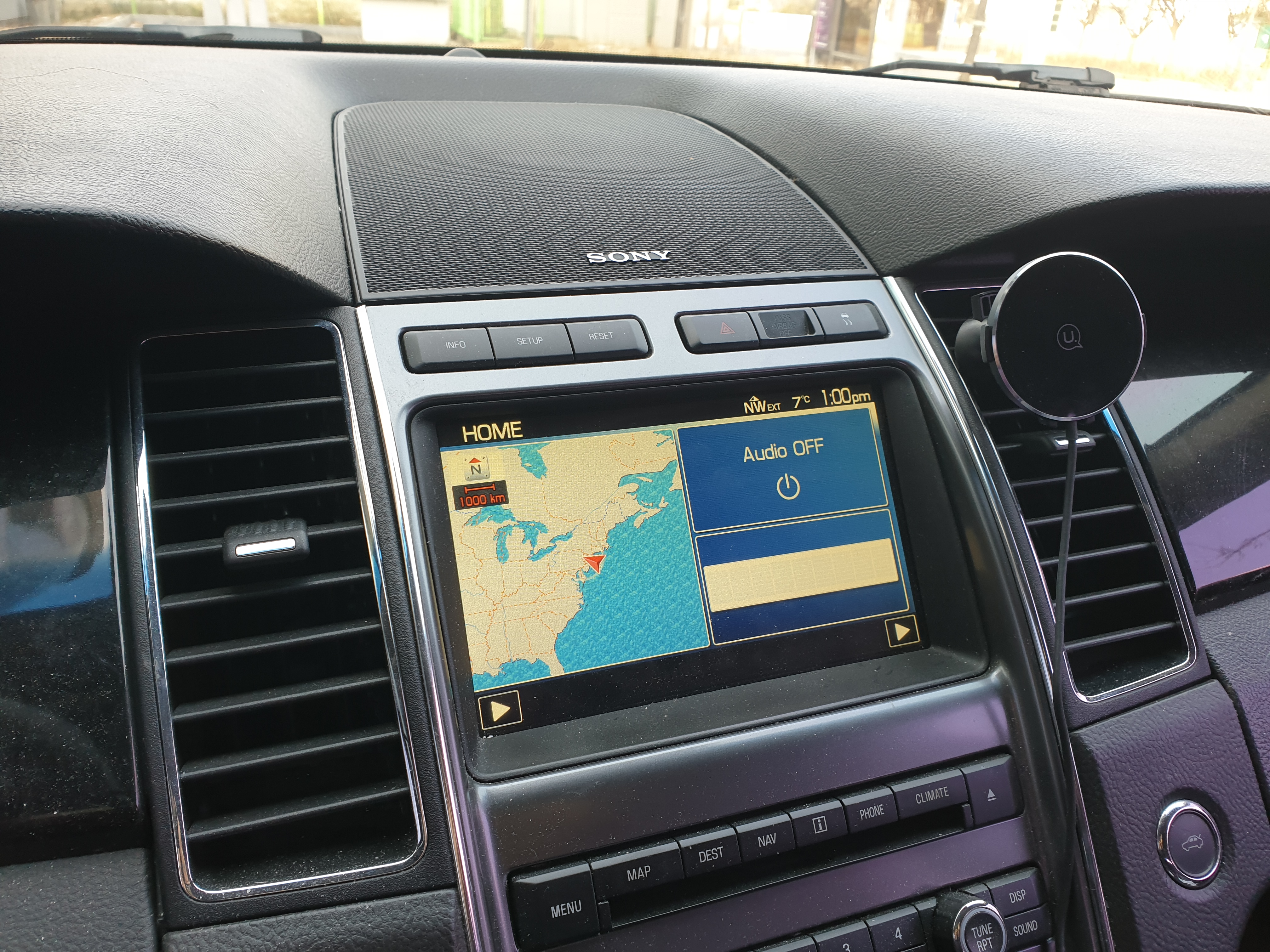 자석식 무선충전기를 송풍구쪽에 장착. 소형이라 지저분하지 않아 좋음.