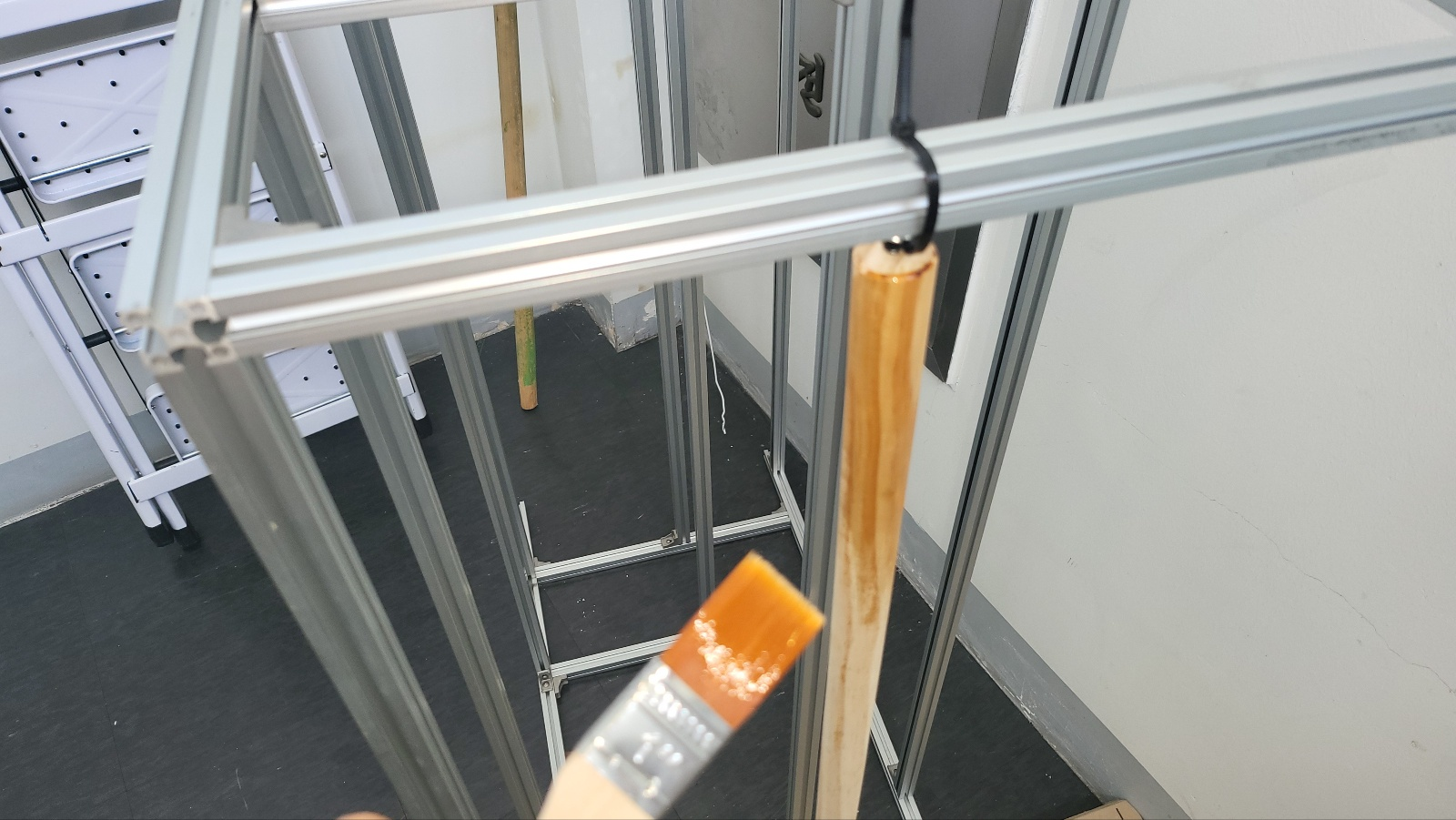 - 뉴송 목봉 절단한것 끝 부분에 피스 박고 거치