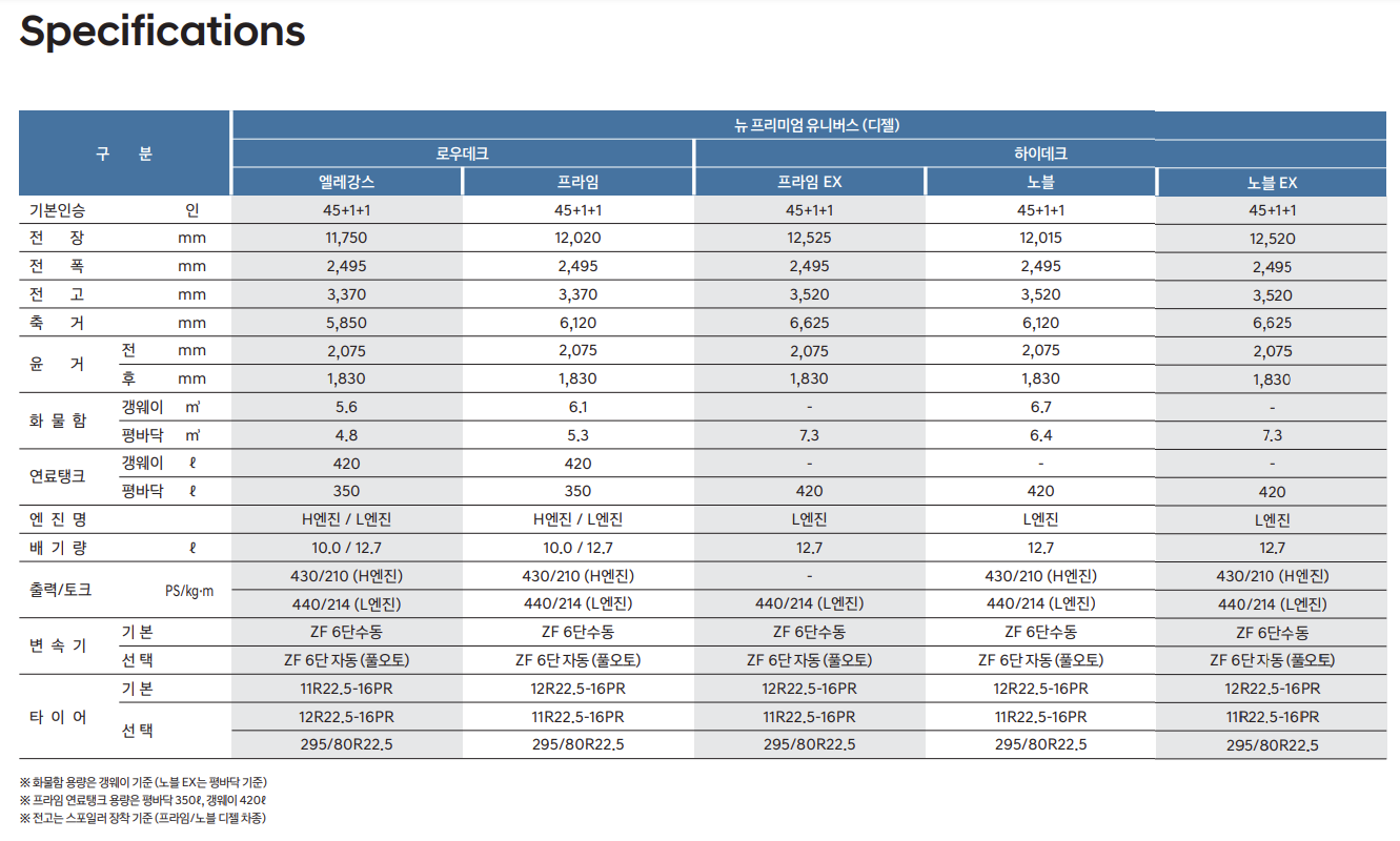- 유니버스 첫 출시 : 2006년 . (에어로 타운, 에어로 시티 등 에어로 시리즈 버스 후속 모델)