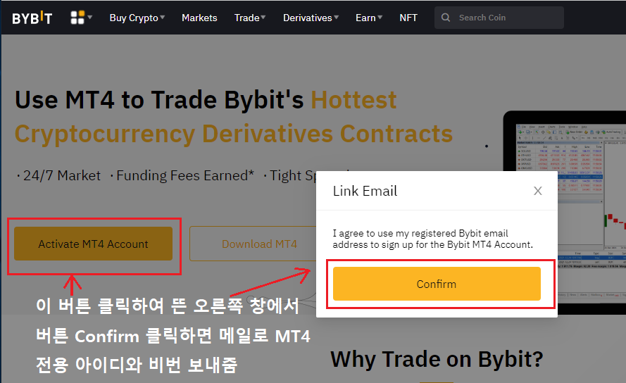 바이비트 로그인 상태에서 아래 주소 클릭하여 메타트레이더 4 전용 계좌 추가한다.