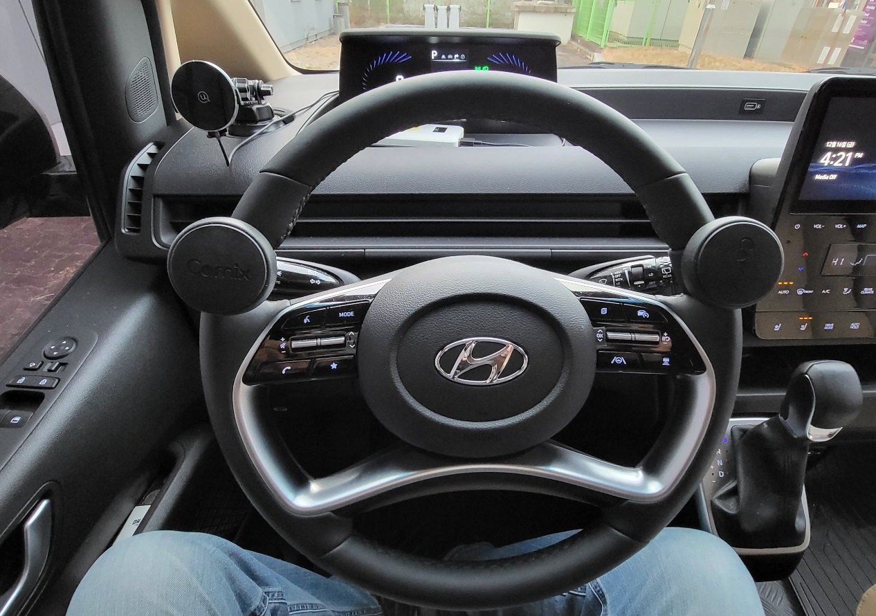 - 핸들 아래 배치 한 것보다는 덜 안정적 이나 사용성에 문제 없음.