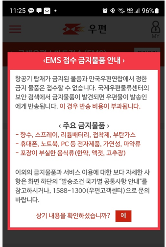 배송 금지물품.