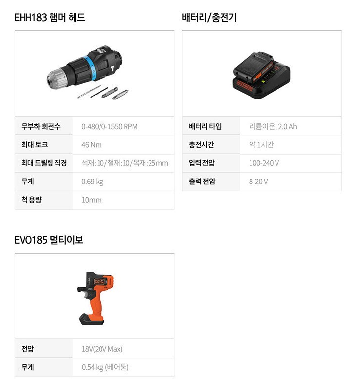[블랙앤데커] 20V멀티이보 공구 리튬이온 EVO185H1