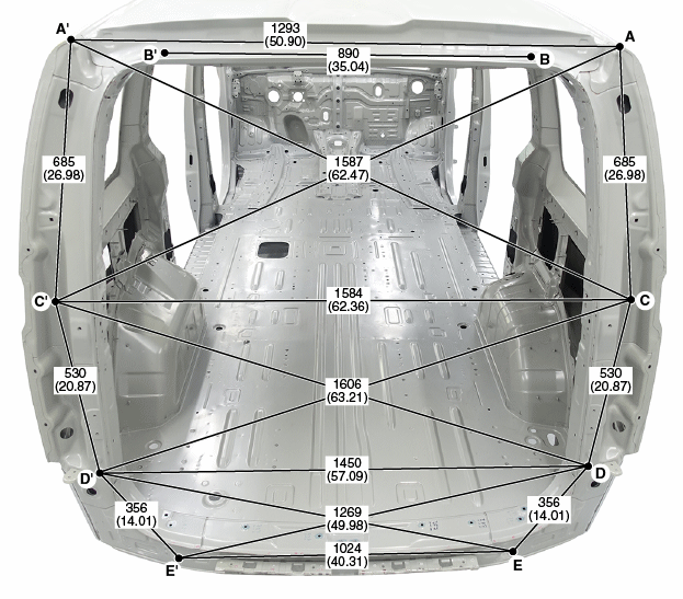 - 600 mm : 측면 트렁크망 걸이 지점까지.