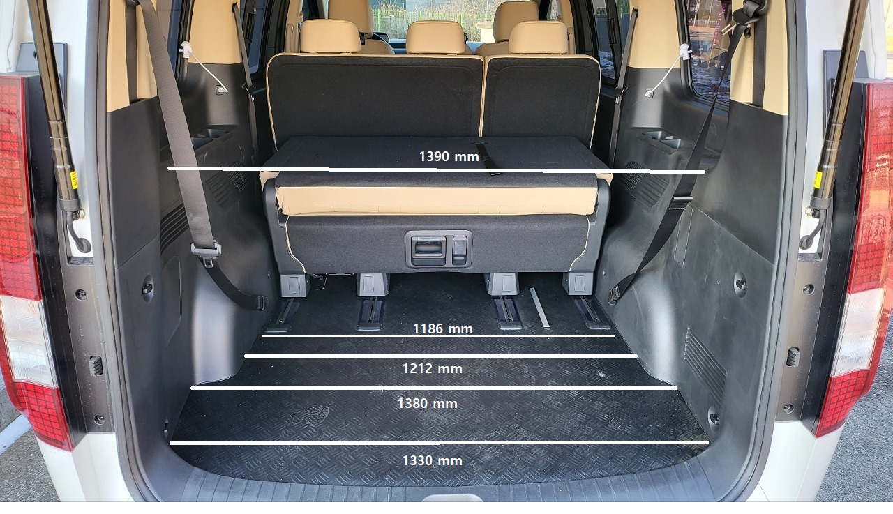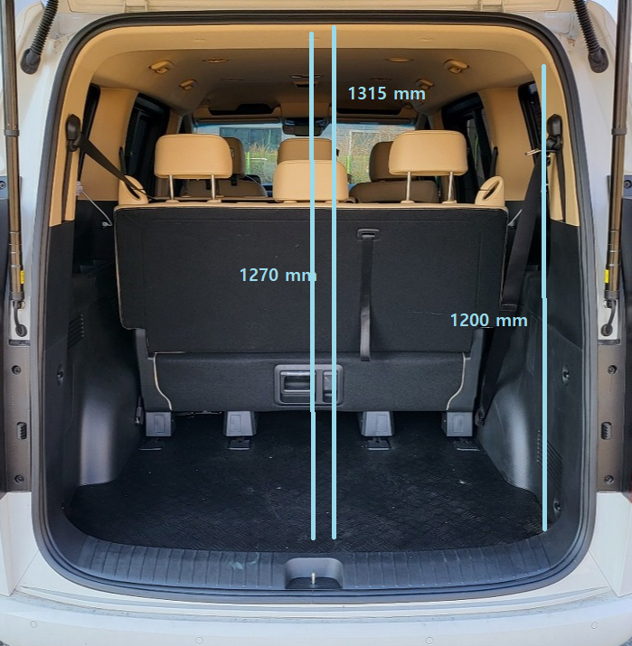 3열 의자 세우고 뒤로 모두 기울인 상태의 높이.