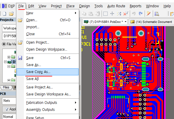 앞의 그림에서처럼 .PcbDoc 을 선택한 상태에서 메뉴 : FIle -> Save Copy As... 클릭 (아래그림)