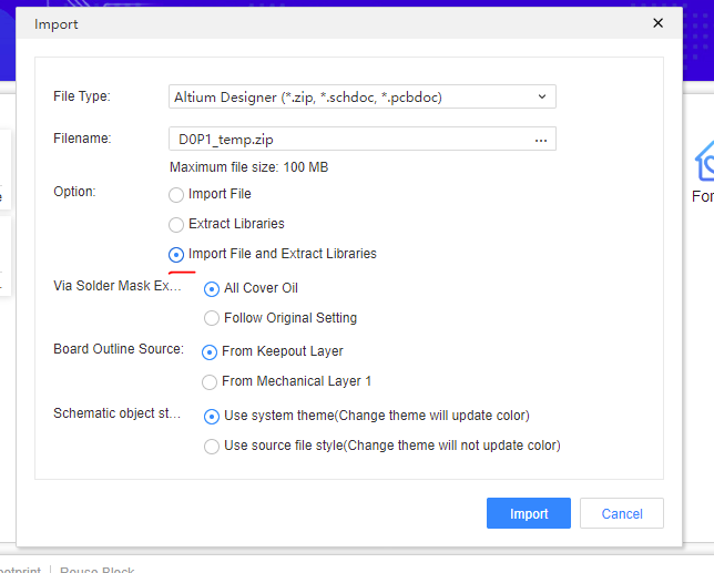 EasyEDA 에서 알티움 Sch, PCB , 포함된 부품 라이브러리 임포팅 하기.