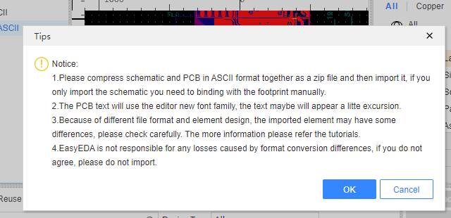 - EasyEDA 에서 알티움 파일 읽어들일때 ASCII 형식으로 저장된 것이어야 한다.