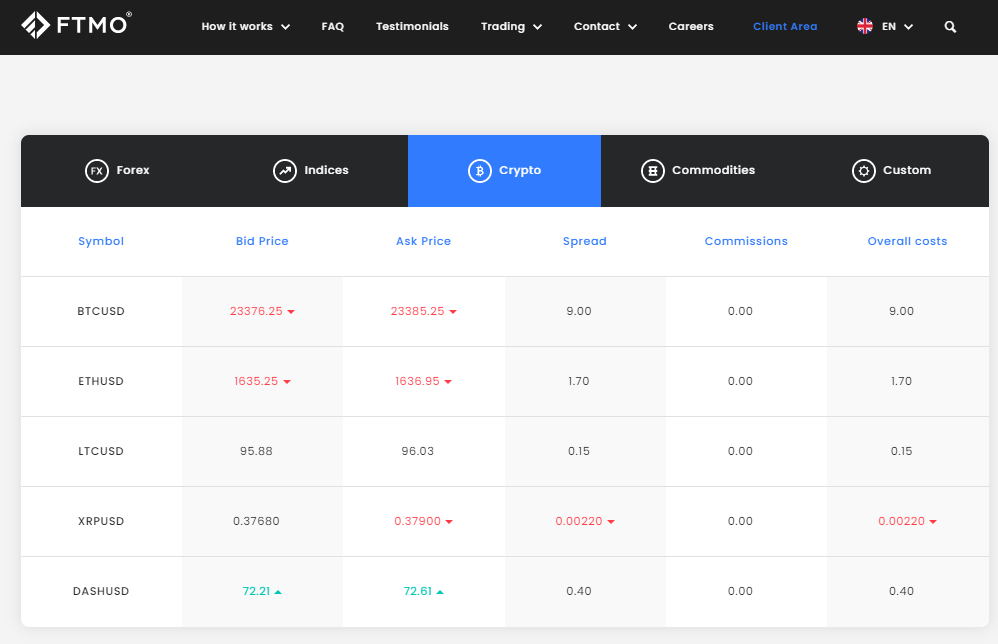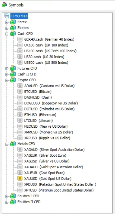FTMO 에서 거래 가능한 종목