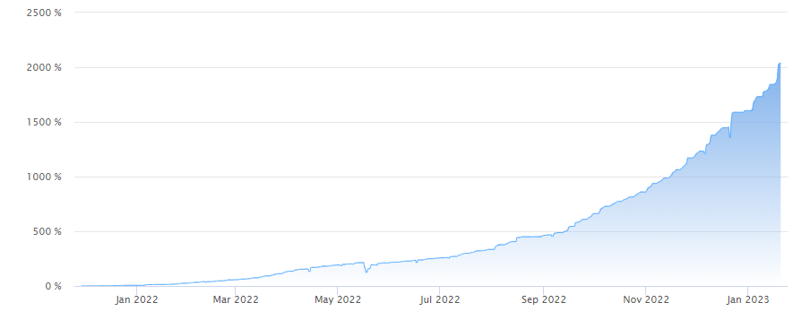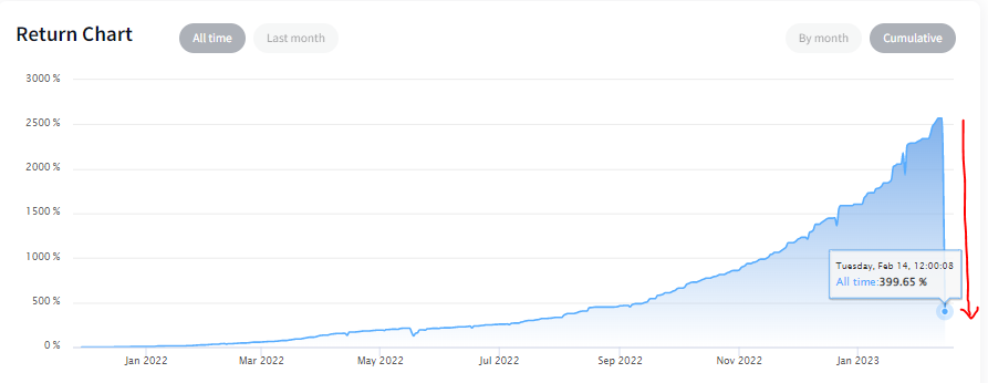 그런데, 2023년 2월 13일 밤에 갑자기 하락 시작 하면서 하루 동안 -2,000% 의 손실 찍는 모습을 보였다.