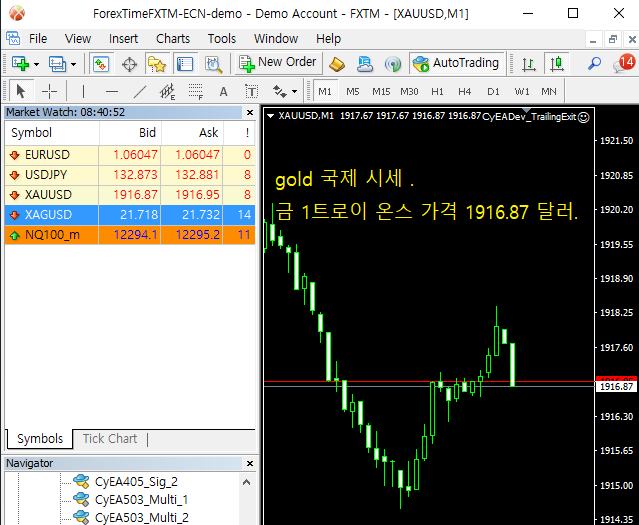 메타트레이더 등에서 보이는 골드 시세에 보이는 가격은 무게 1트로이 온스인 금의 가치를 미국달러(USD) 로 표현 한 것.