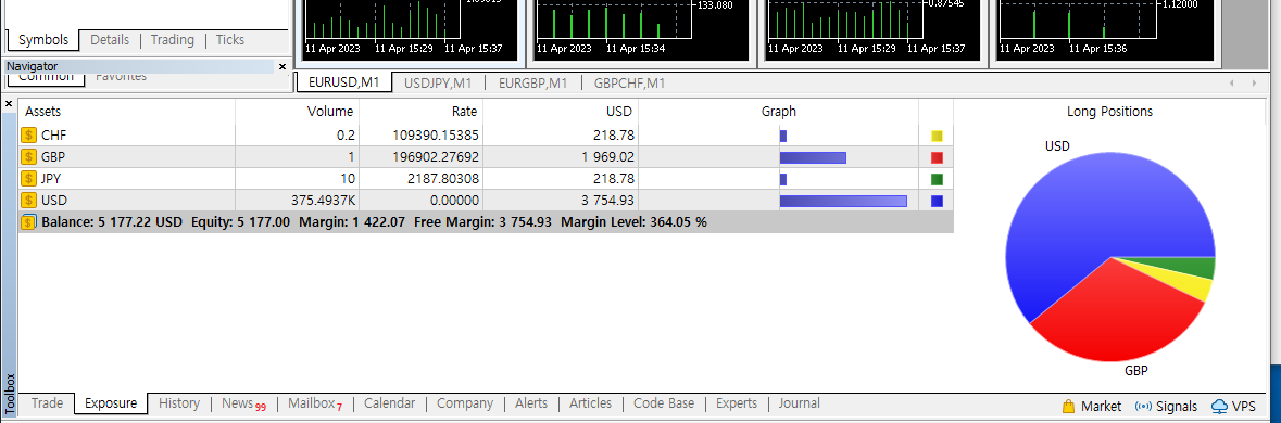 이는 GBPCHF 매수 포지션과 GBPCHF 매도 포지션에 의한 알짜 CHF 보유 수량을 보여주는것이다.