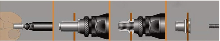- 철판 등의 뒷면에 접근하지 못하는 상황에서 너트를 리벳팅 방식으로 고정 가능하여 볼트 체결 가능하게 하는 것.