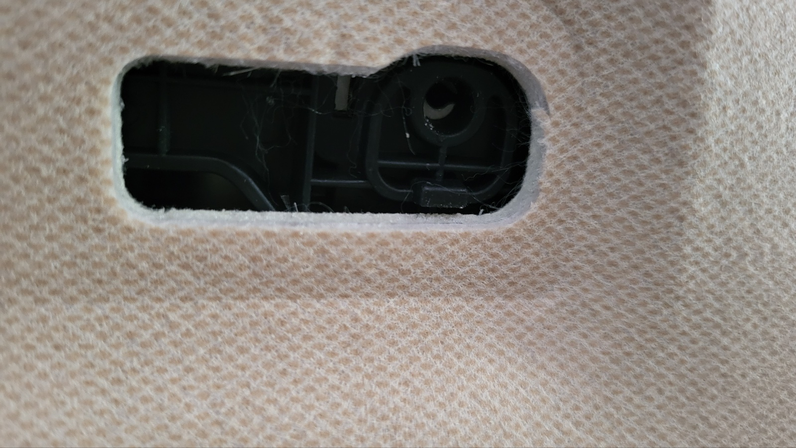 검정색( 플라스틱 재질) 은 내장재와 차체 부분 직접 닫지 않게 하는 용도이며, 하얀 색 부분이 나사못 체결되는 곳.