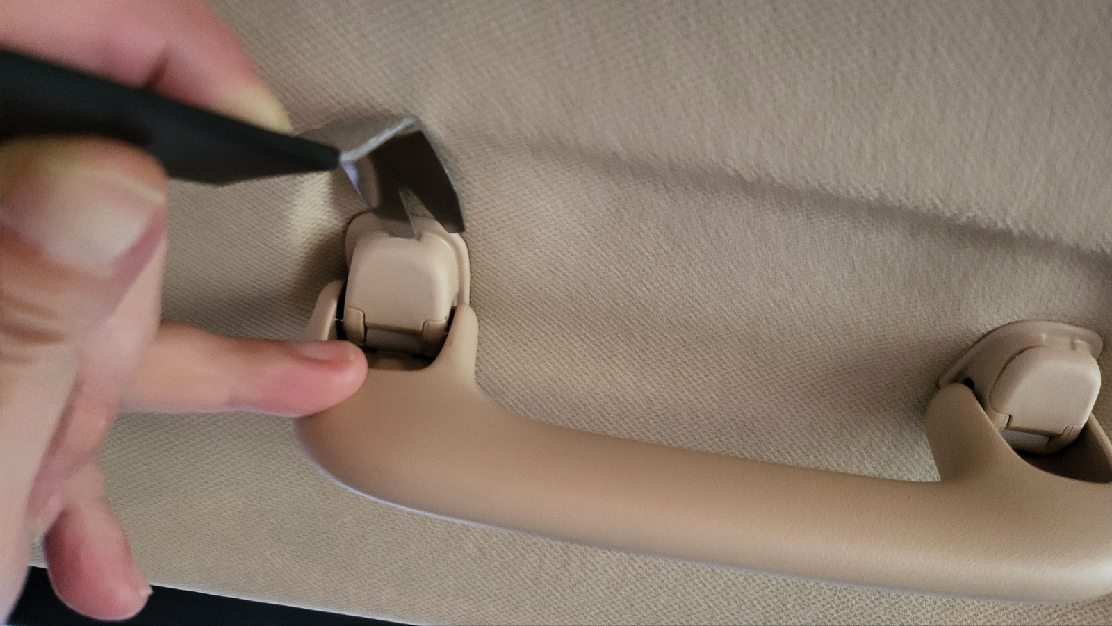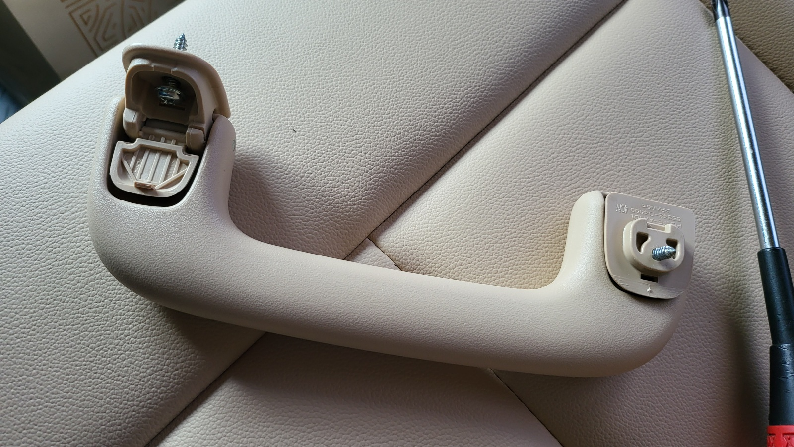 아래 사진의 검정색 2개 중 사진의 오른쪽 것이 2열좌석 위에 있는 손잡이브라켓 왼쪽것은 3열 좌석 위에 있는 손잡이 브라켓.