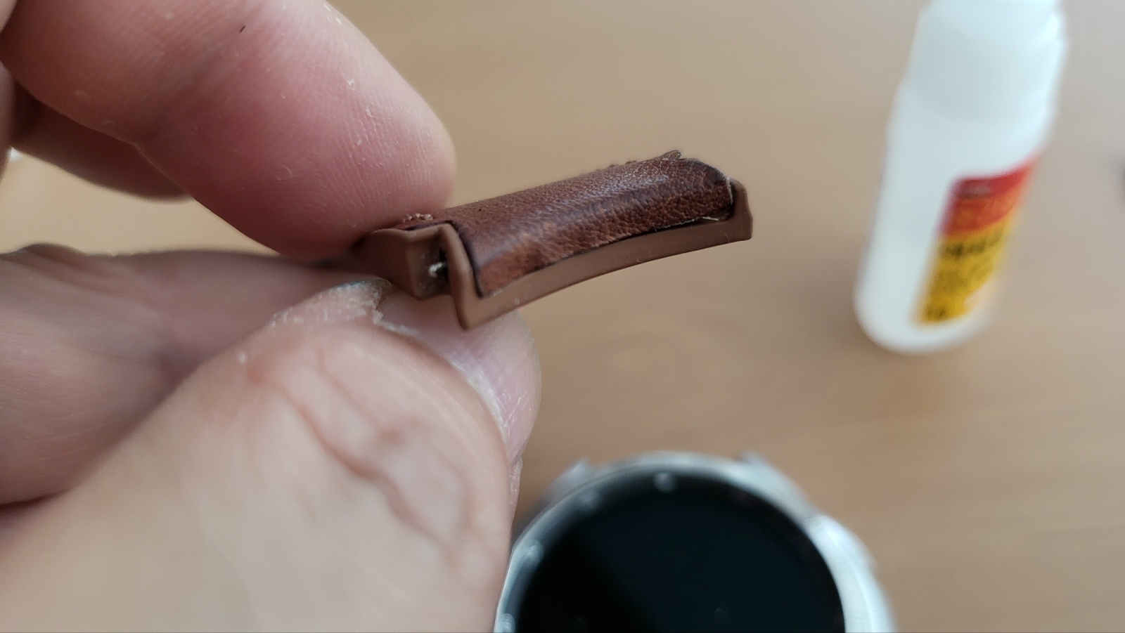갤럭시 워치 4 가죽스트랩 이 떨어진 것 제품3. 돼지표 순간접착제 로 부착해봄.