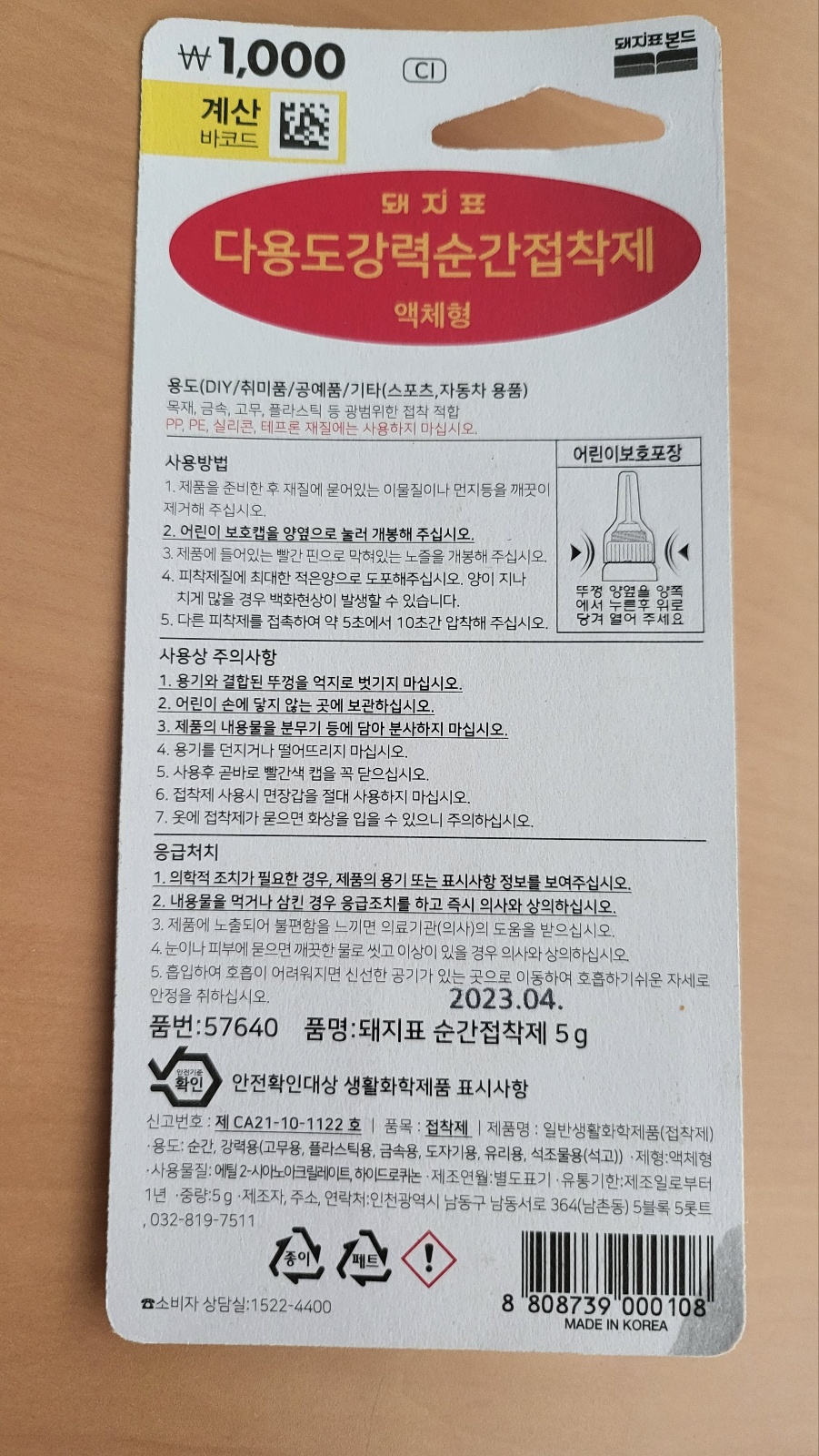 접착 가능 대상 : 가죽, 고무, 목재, 금속, 도자기