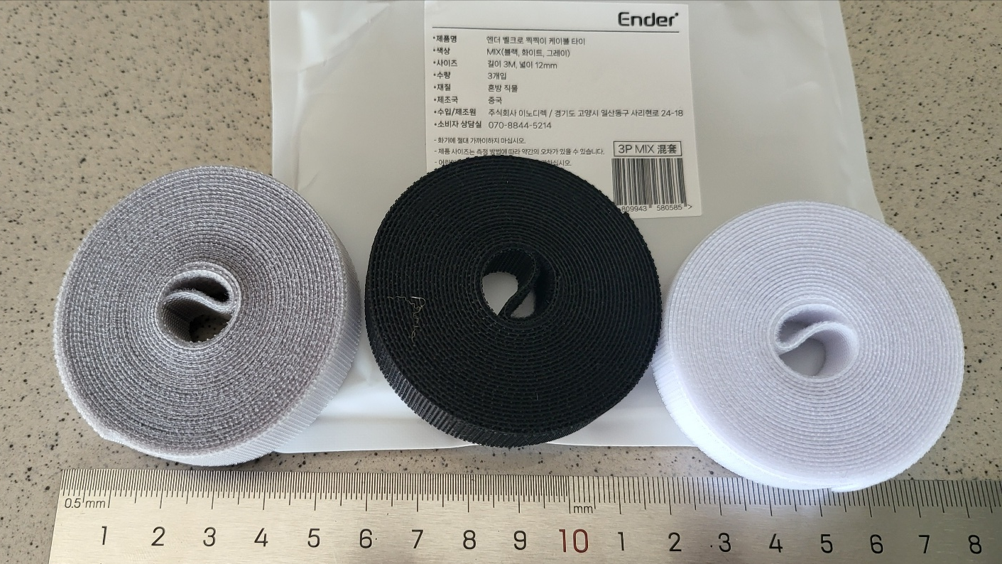 엔더 벨크로 케이블 타이 3종 세트, 블랙, 화이트, 그..., 1세트