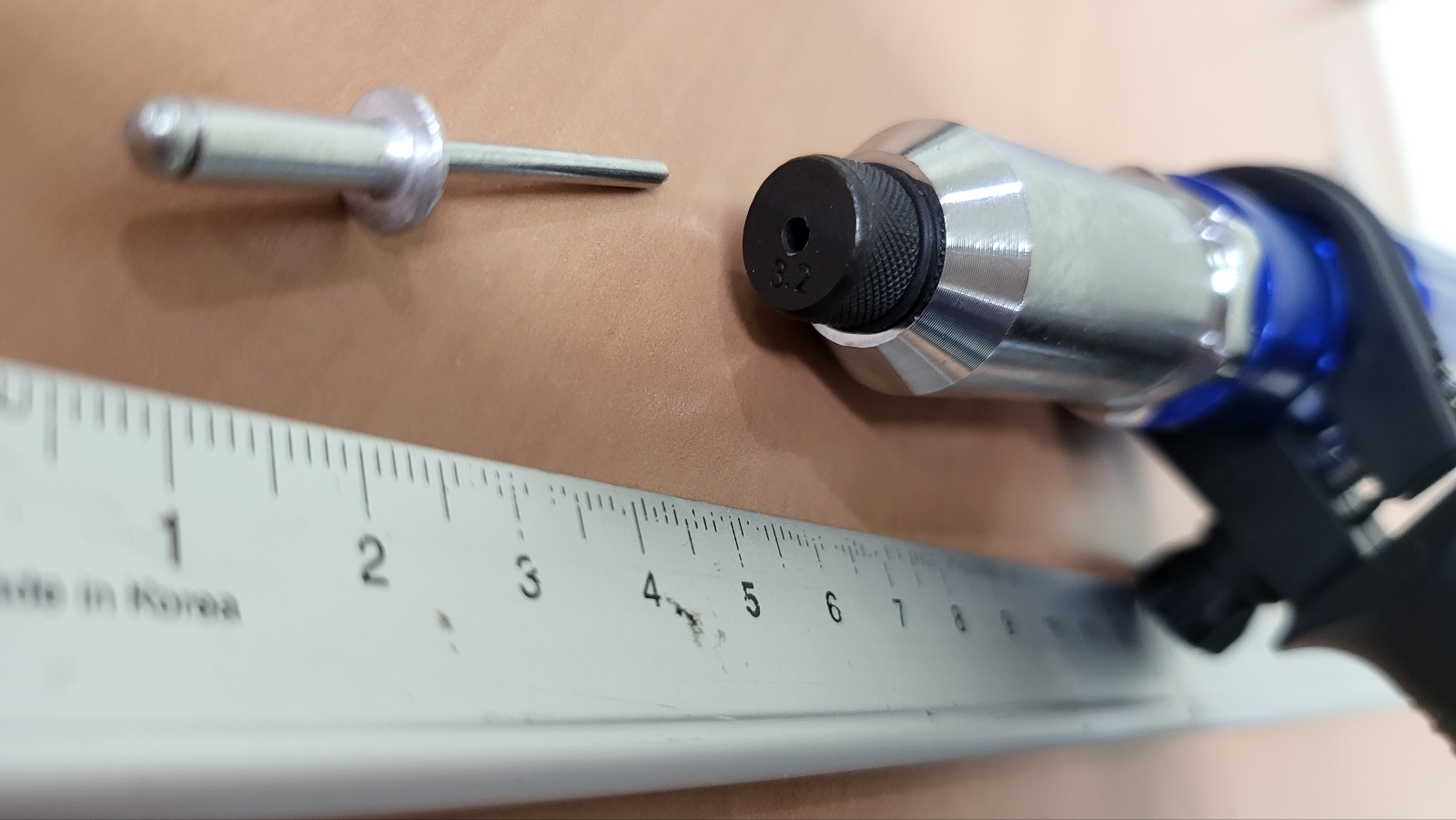 - 리벳건 뒤 회전샤프트를 반시계 방향으로 돌려 딸깍 하는 소리 나면 리벳 넣을 수 있다.