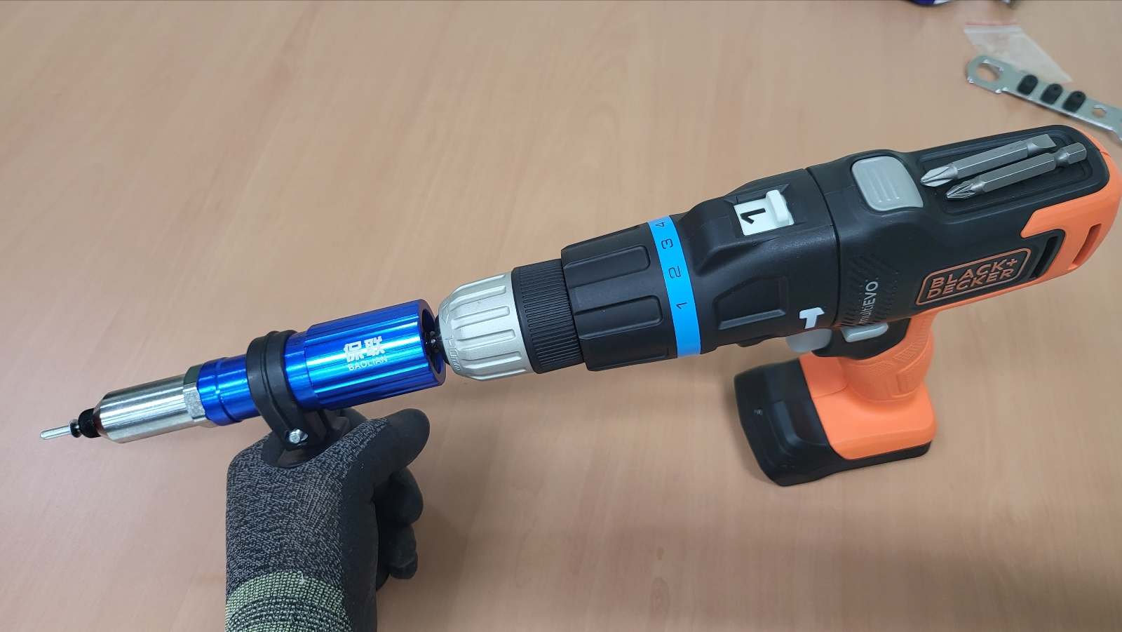 팝너트 장착 수단은 여러 방법이 가능한데 , 현재 시점 (2023.06.05) 가장 효율적이고 가성비 좋아보이는 툴 선택함. 드릴에 연결해도 되고 렌치로 수동으로도 작업 가능 구입처 가격 : 개략 1만5천