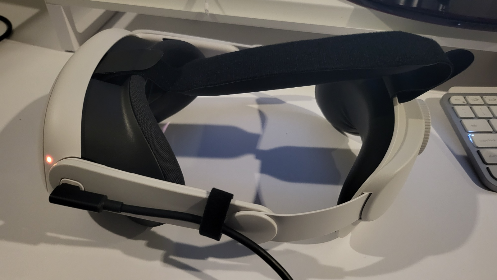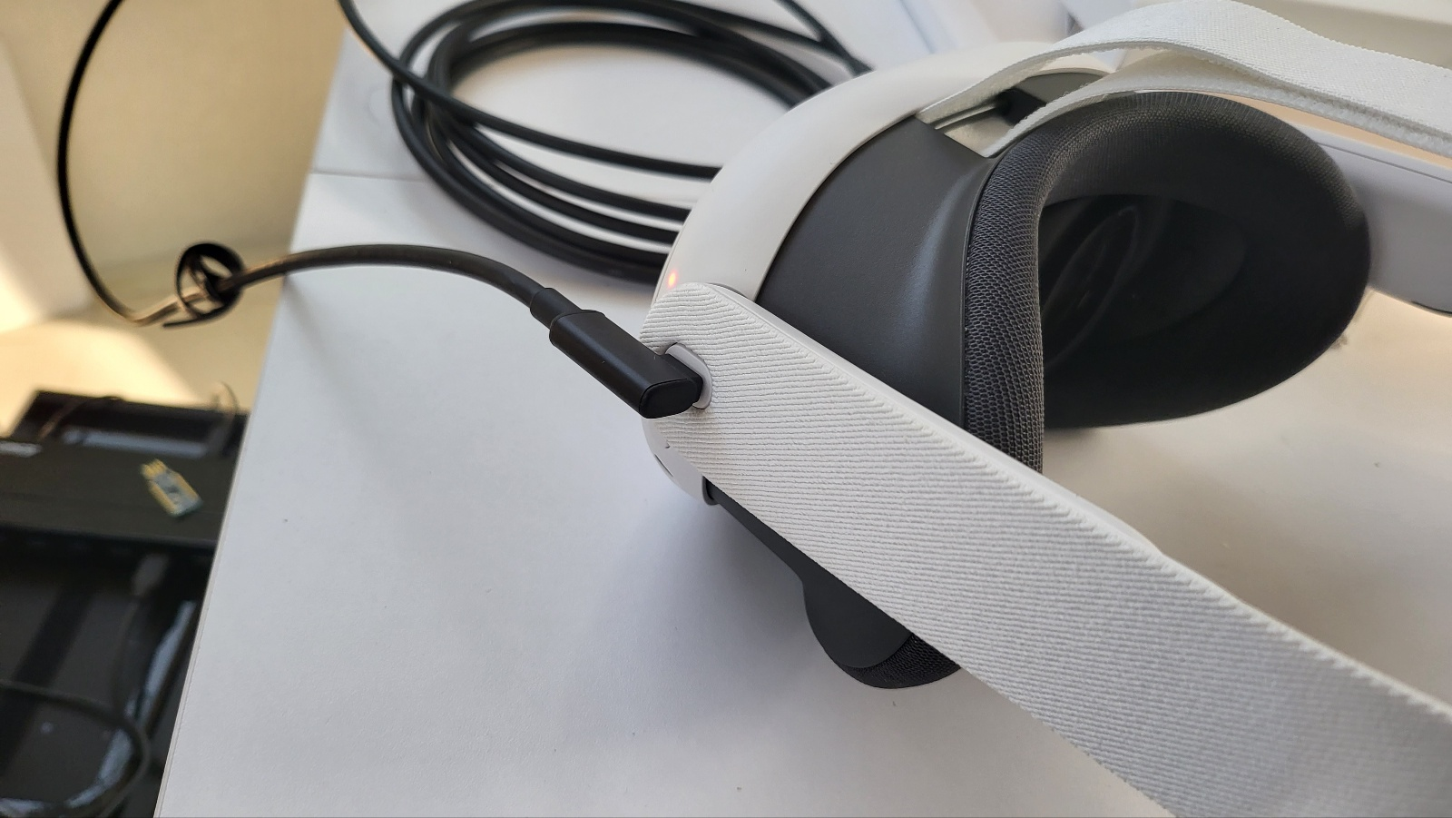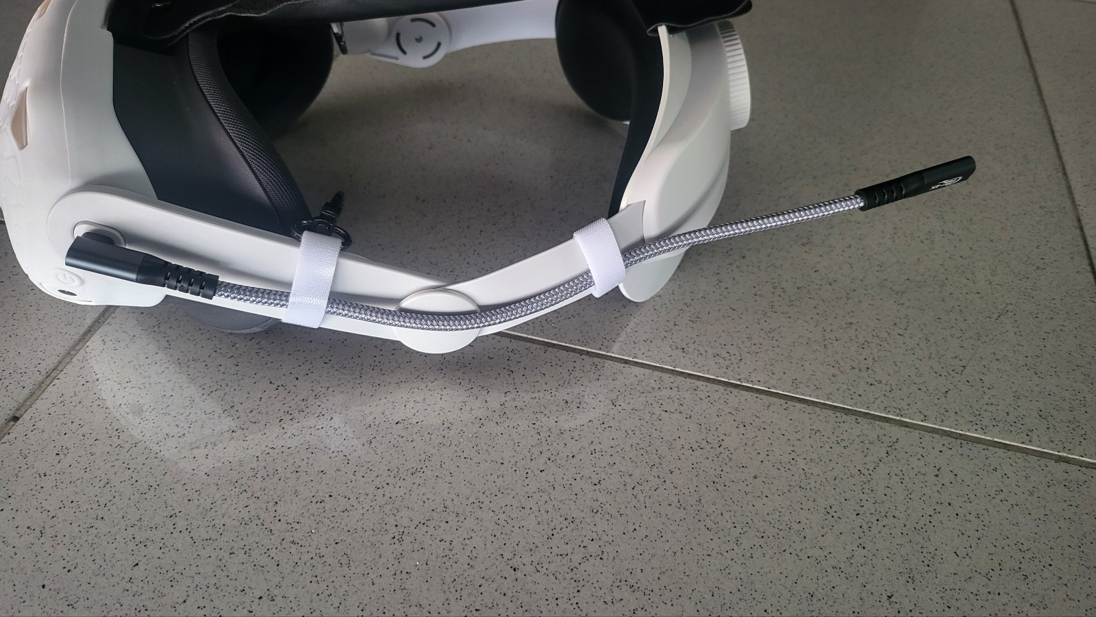 - 퀘스트 3 에는 짧은 C-to-C ( 수컷-암컷)을 벨크로 타이로 고정해두고 상황에 따라 긴것 짧은것 빠르게 연결 할 수 있도록 함.