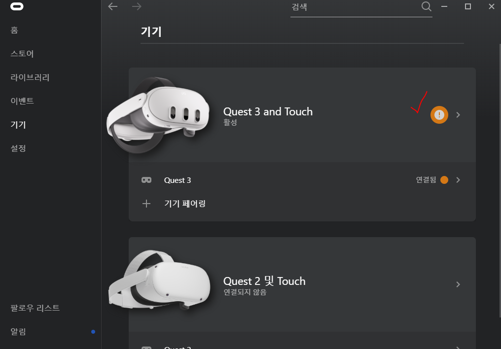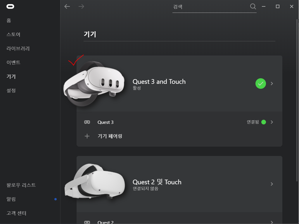 Oculus 앱에서 헤드셋 기기 추가 방법