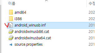 android_winusb.inf 우마우스 클릭하여 뜬 메뉴에서 설치 클릭하여 설치.