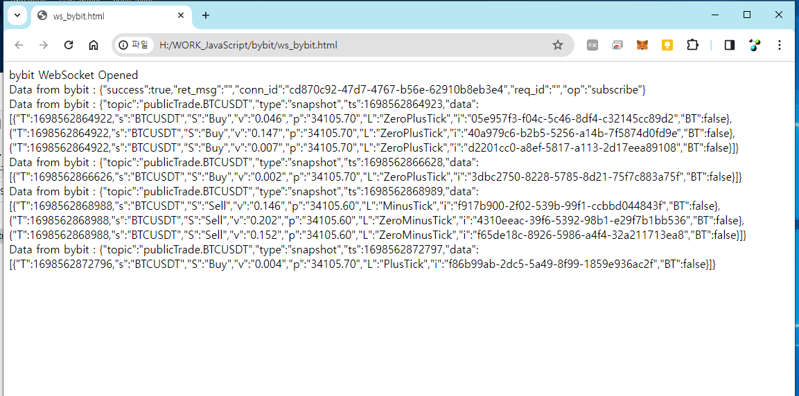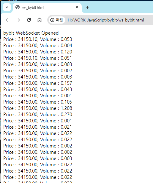 위 코드에 있는 내용처럼 2개의 파일 ws_bybit.js , ws_bybit.html 을 동일 폴더에 만들고,