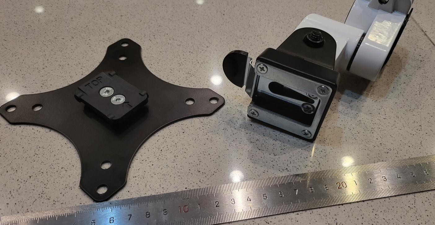 VESA 브라켓을 슬라이딩 식으로 끼우면 고정됨.