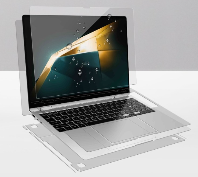 갤럭시 북 4 프로 360 휴대하면서 태블릿 용도로 자주 사용하는 경우 보호 필름 필수.