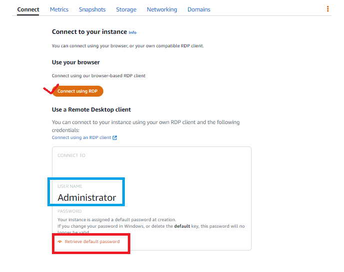초기 기본 생성된 윈도우 서버의 관리자 아이디 Administrator , 기본 비번은 위 붉은색 박스 클릭하면 보여준다.