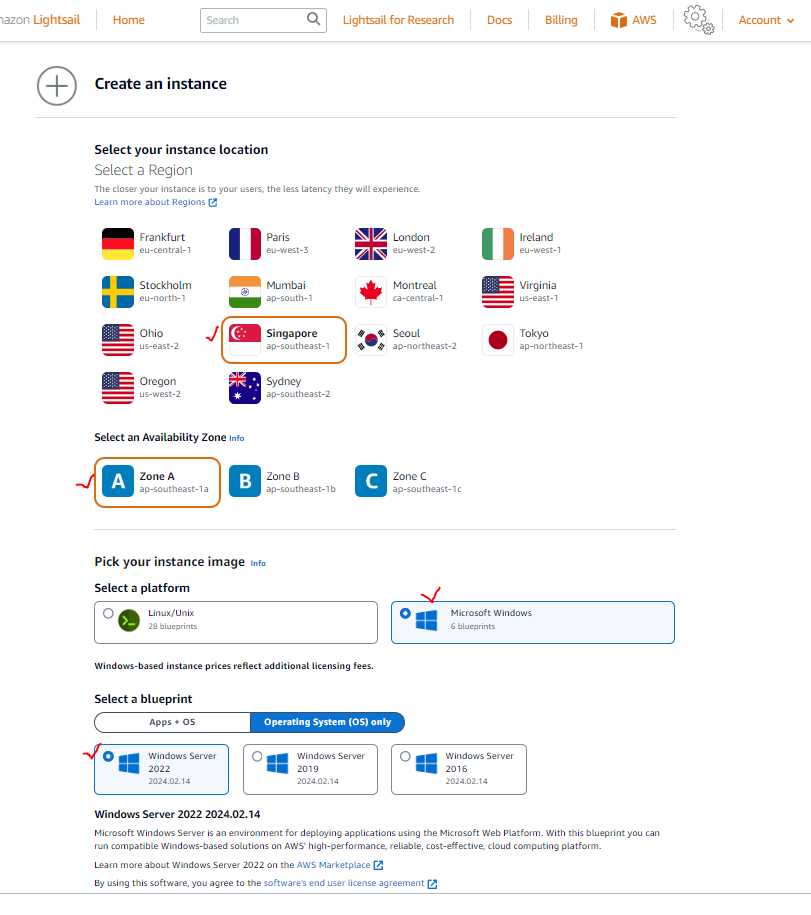 비교 : AWS 의 EC2 서버 구축하려면 별 구질 구질 지저분 한 설정이 너무 많은데 비해 Lightsail 은 간단한 설정 만으로도 쉽고 빠르게( 5분이내) 서버 구축 가능.
