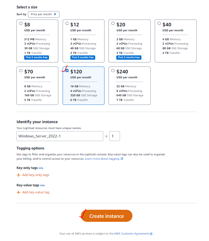 - 본 예에서는cpu 4개, ram 16G, SSD 320G, 통신용량 6TB 선택.