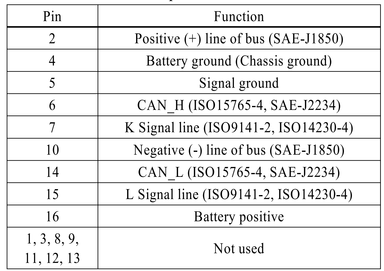 OBD 2 커넥터 핀맵