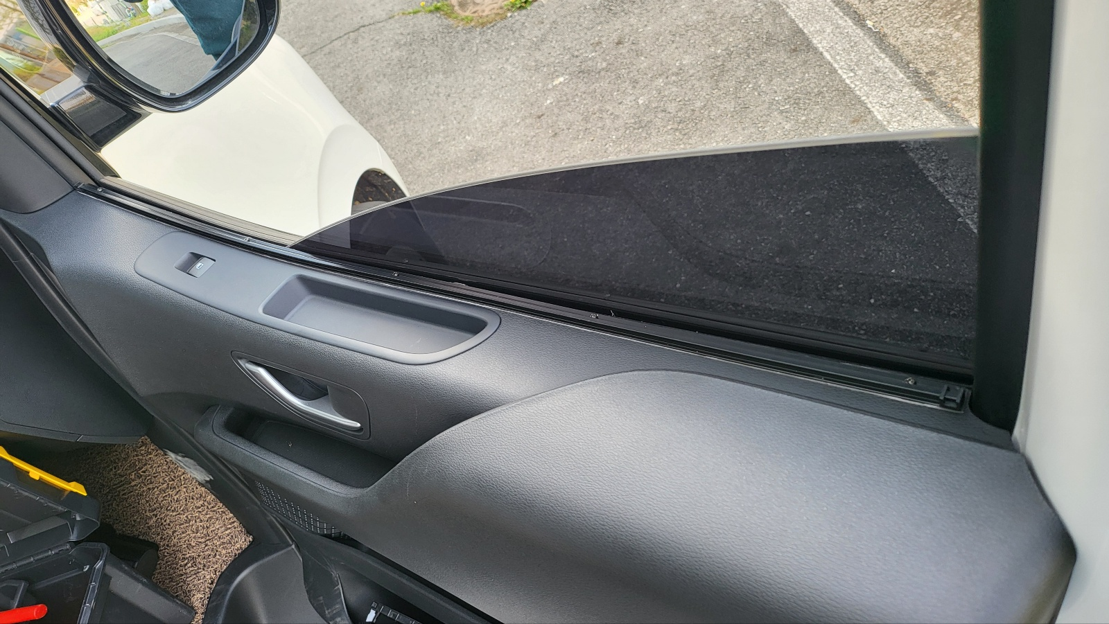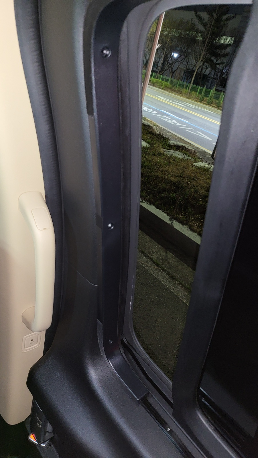 - 커튼이 사이드 미러 시야 가리면 안되므로 커튼 쳐질 곳까지만 커튼 레일 부착하게 되어있다.