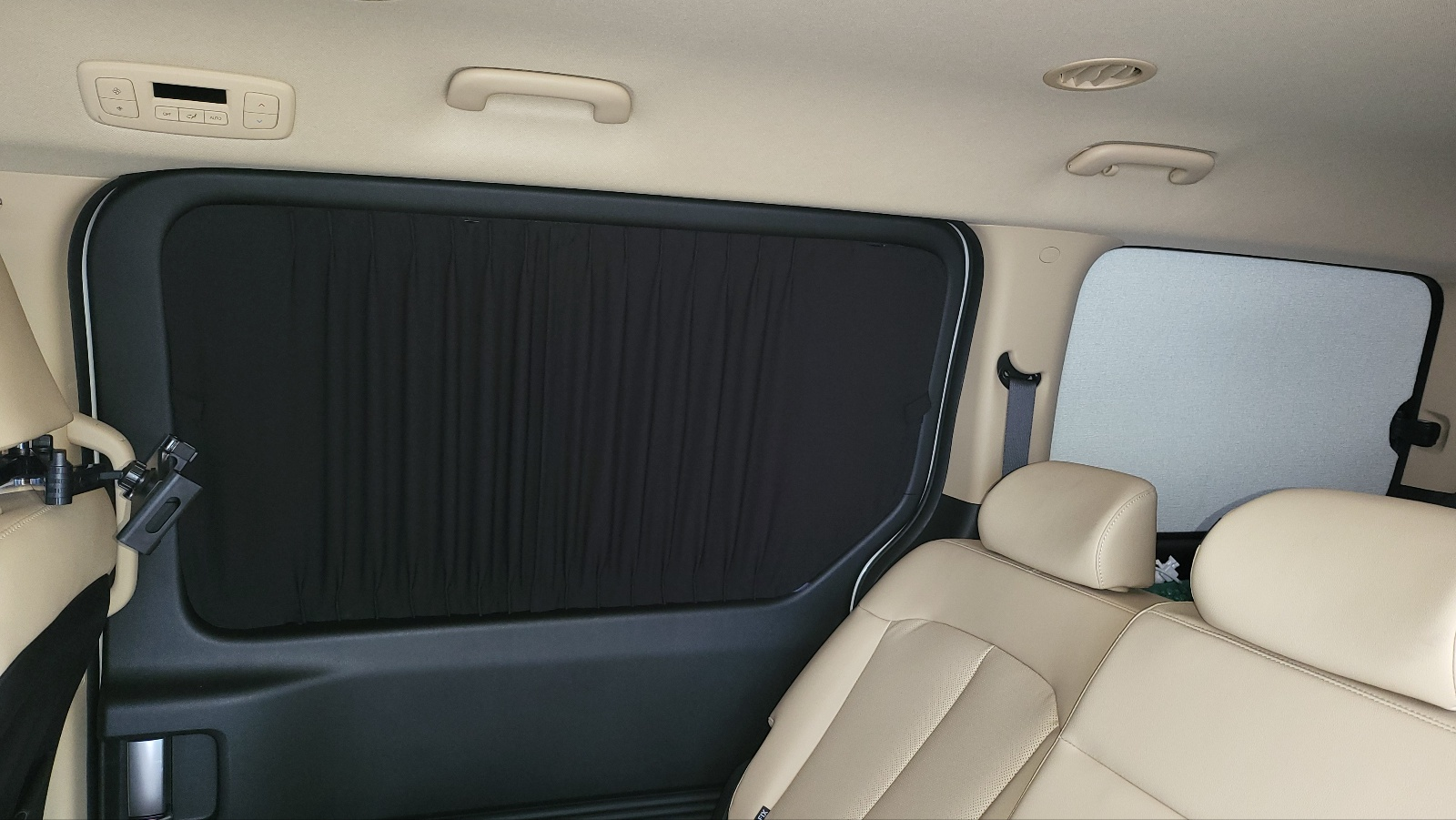 - 커튼이 2개로 분리되어있고, 주행중에는 앞부분을 열어두면 사이드 미러 확인 가능.